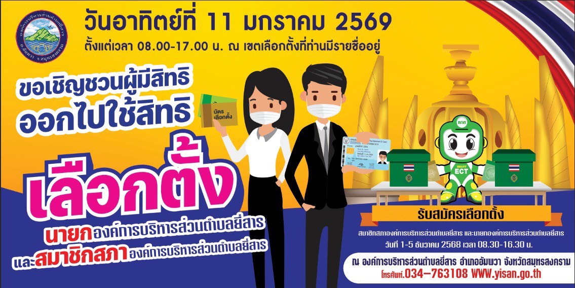 ลิขสิทธิ์ © 2564 องค์การบริหารส่วนตำบลยี่สาร จังหวัดสมุทรสงคราม สงวนไว้ซึ่งสิทธิทั้งหมด.