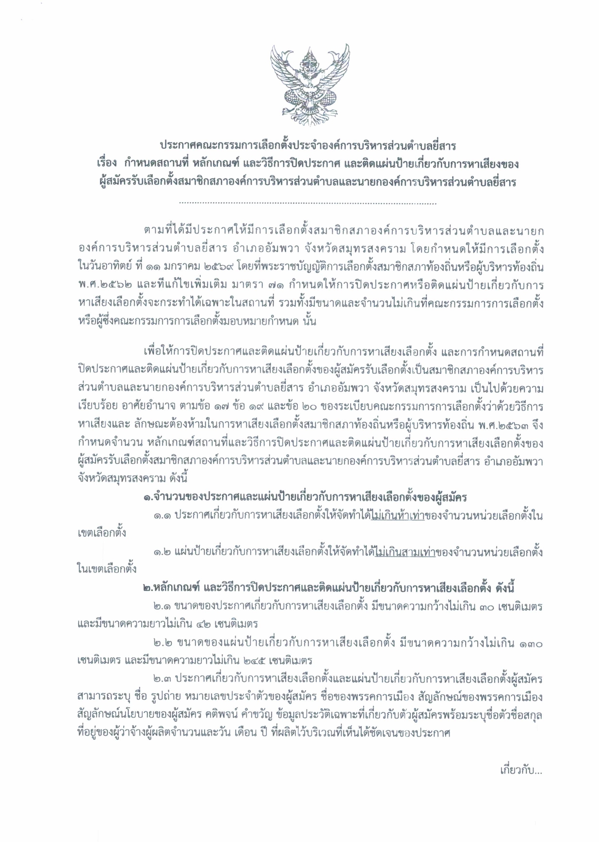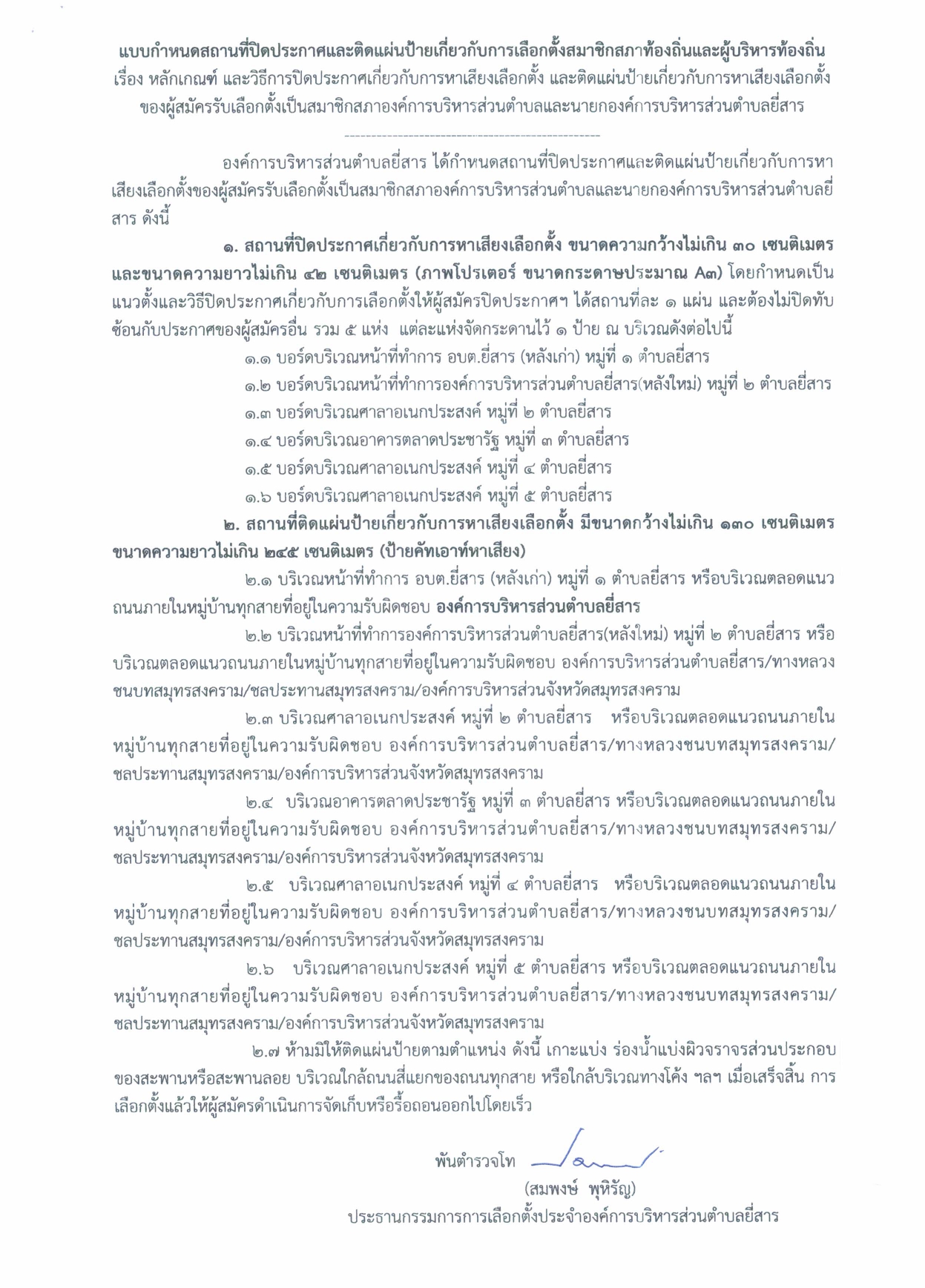 ประกาศคณะกรรมการรการเลือกตั้งประจำองค์การบริหารส่วนตำบลยี่สาร เรื่องง กำหนดสถานที่ หลักเกณฑ์ และวิธีการปิดประกาศ และติดแผ่นป้ายเกี่ยวกับการหาเสียง ผู้สมัครรับเลือกตั้งสมาชิกสภาองค์การบริหารส่วนตำบลและนายกองค์การบริหารส่วนตำบลยี่สาร