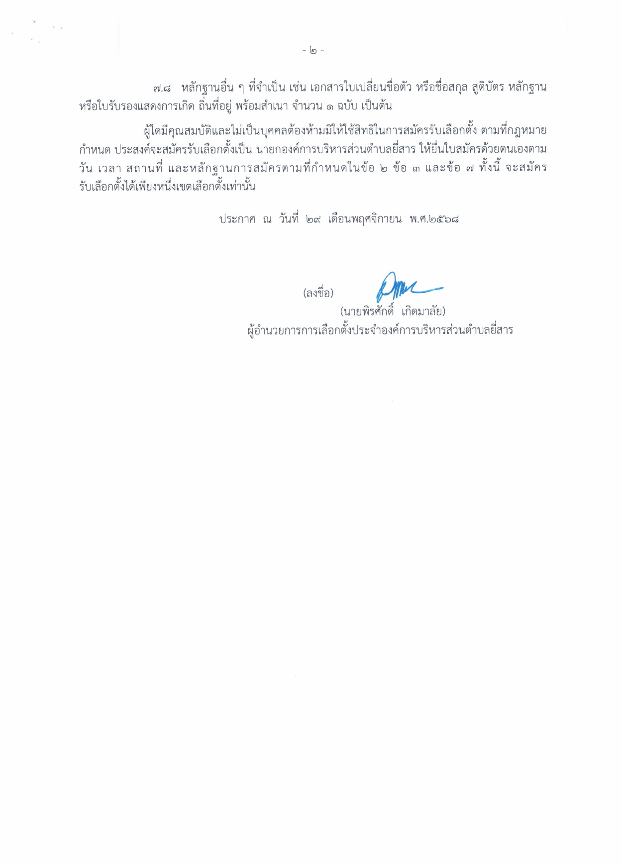 ประกาศผู้อำนวยการการเลือกตั้งประจำองค์การบริหารส่วนตำบลยี่สาร เรื่อง ให้มีการเลือกตั้งนายกองค์การบริหารส่วนตำบลยี่สาร
