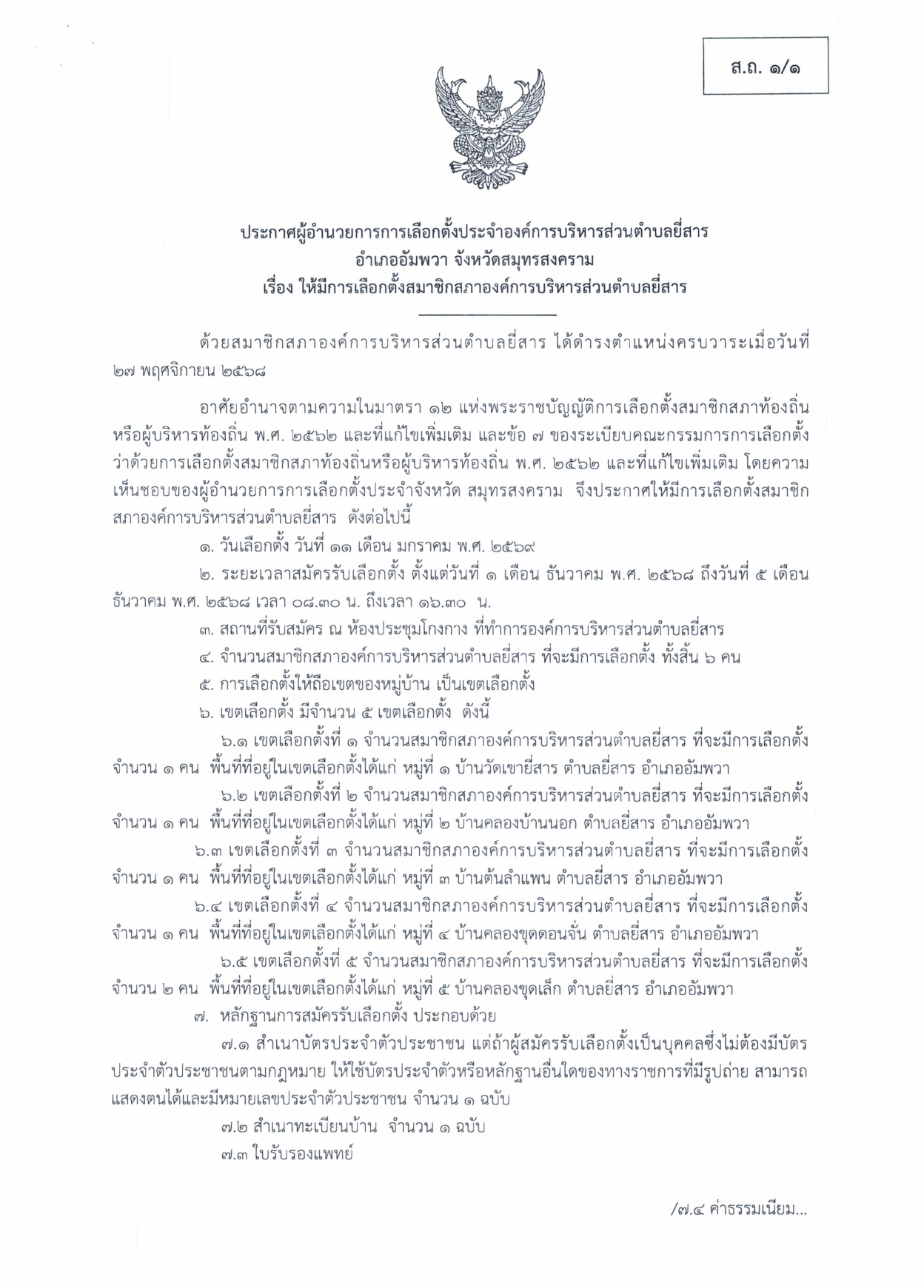 ประกาศผู้อำนวยกการการเลือกตั้งประจำองค์การบริหารส่วนตำบลยี่สาร เรื่อง ให้มีการเลือกตั้งสมาชิกสภาองค์การบริหารส่วนตำบลยี่สาร